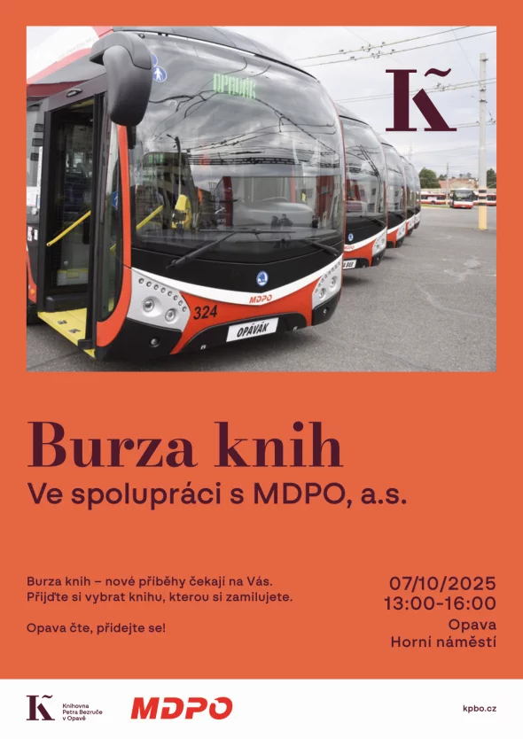 Společně s Městským dopravním podnikem Opava (MDPO) vás zveme na Burzu knih, která proběhne už tradičně na Horním náměstí 7. října 2025 od 13:00 do 16:00 hodin.