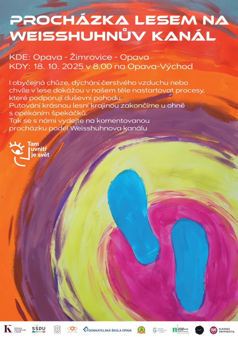 Program nabídne přednášky odborníků, umělecká vystoupení i tvůrčí výstupy studentů. Čeká vás například beseda o laskavém přístupu k dětským emocím, den pro seniory v parku, Terapie sdílením LIVE, odborné debaty i Den Drobných radostí plný relaxace a sdílení. Akci zakončíme komentovanou procházkou po Weisshuhnově kanále s opékáním špekáčků – protože i pobyt v přírodě je cestou k duševní pohodě.