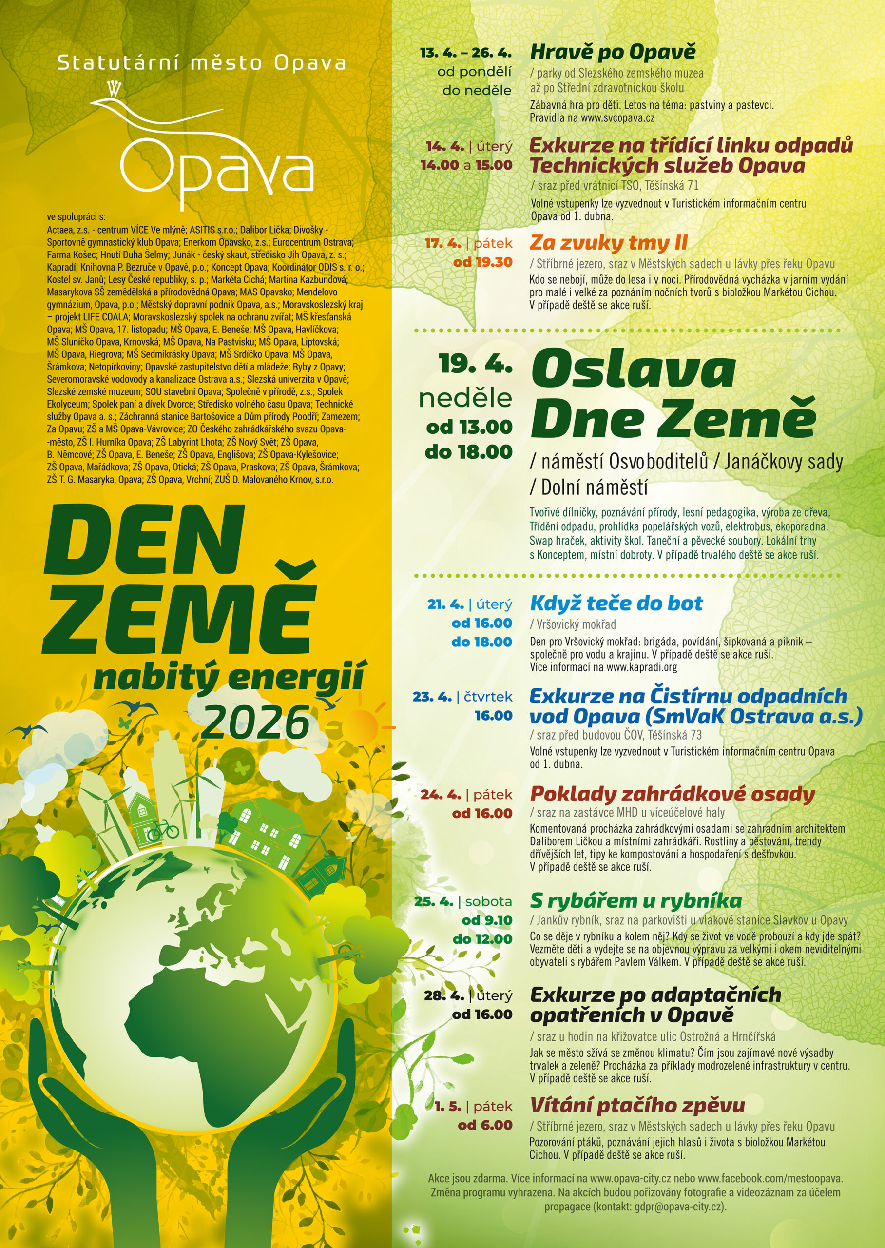 Letos budeme opět součástí velkých oslav Dne Země, které pořádá město, a moc rádi Vás u toho uvidíme! Najdete nás hned na dvou stanovištích, kde budeme mít připravený doprovodný program.
